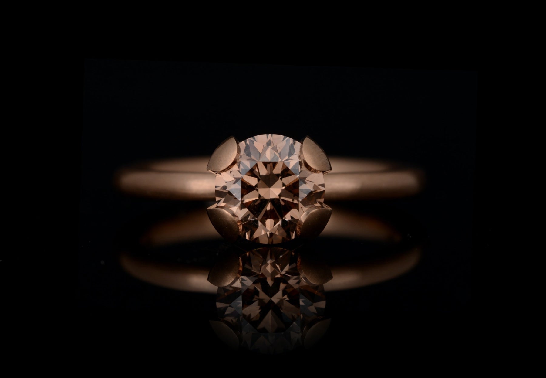 Champagne and cognac diamonds have the same hardness and brilliance as white diamonds but stand out for their warmth and individuality. Because brown tones occur more frequently in nature, they typically offer exceptional value compared to rare fancy colours or colourless stones.