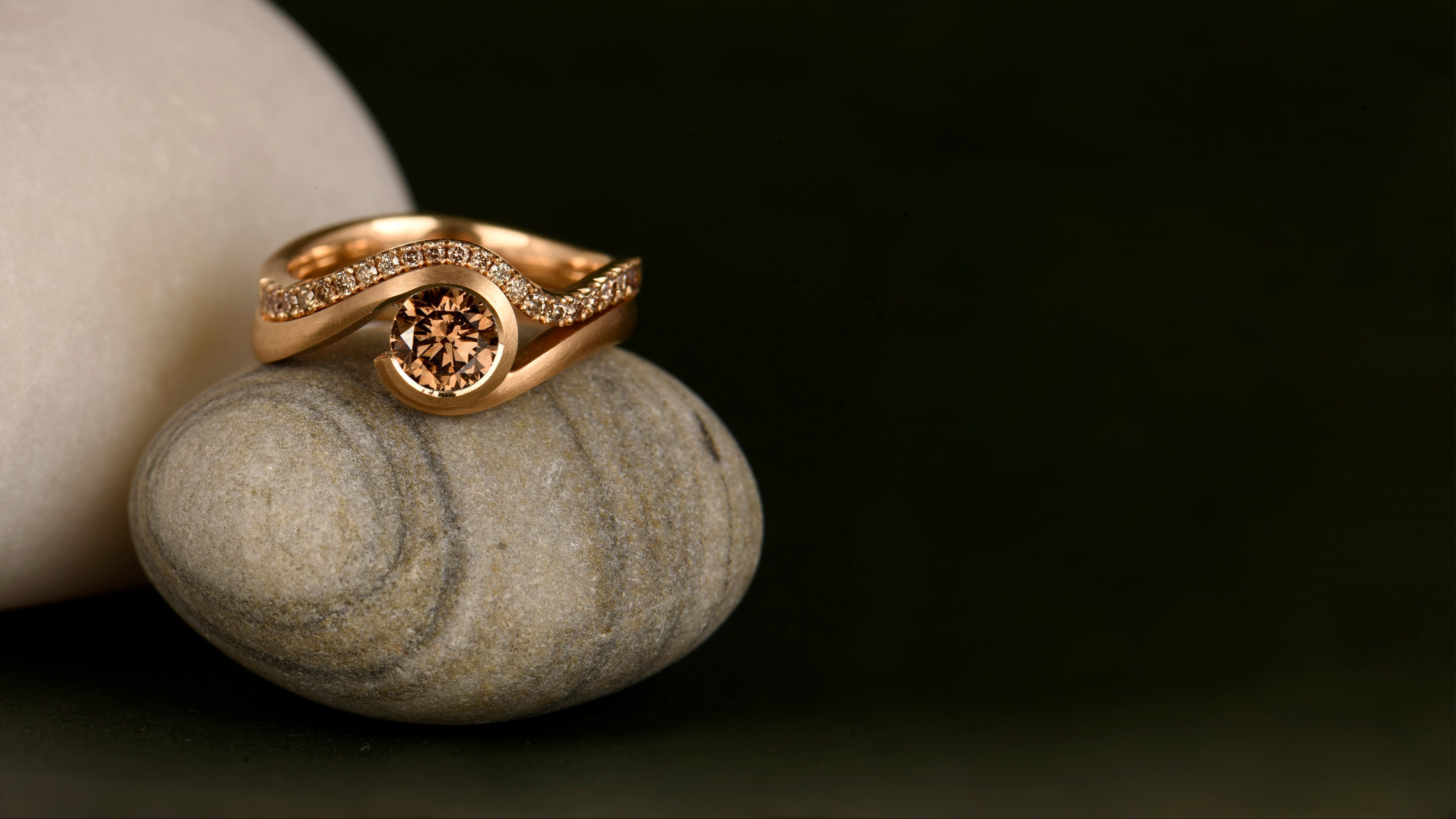 Fairtrade rose gold Wave ring with Argyle cognac diamond