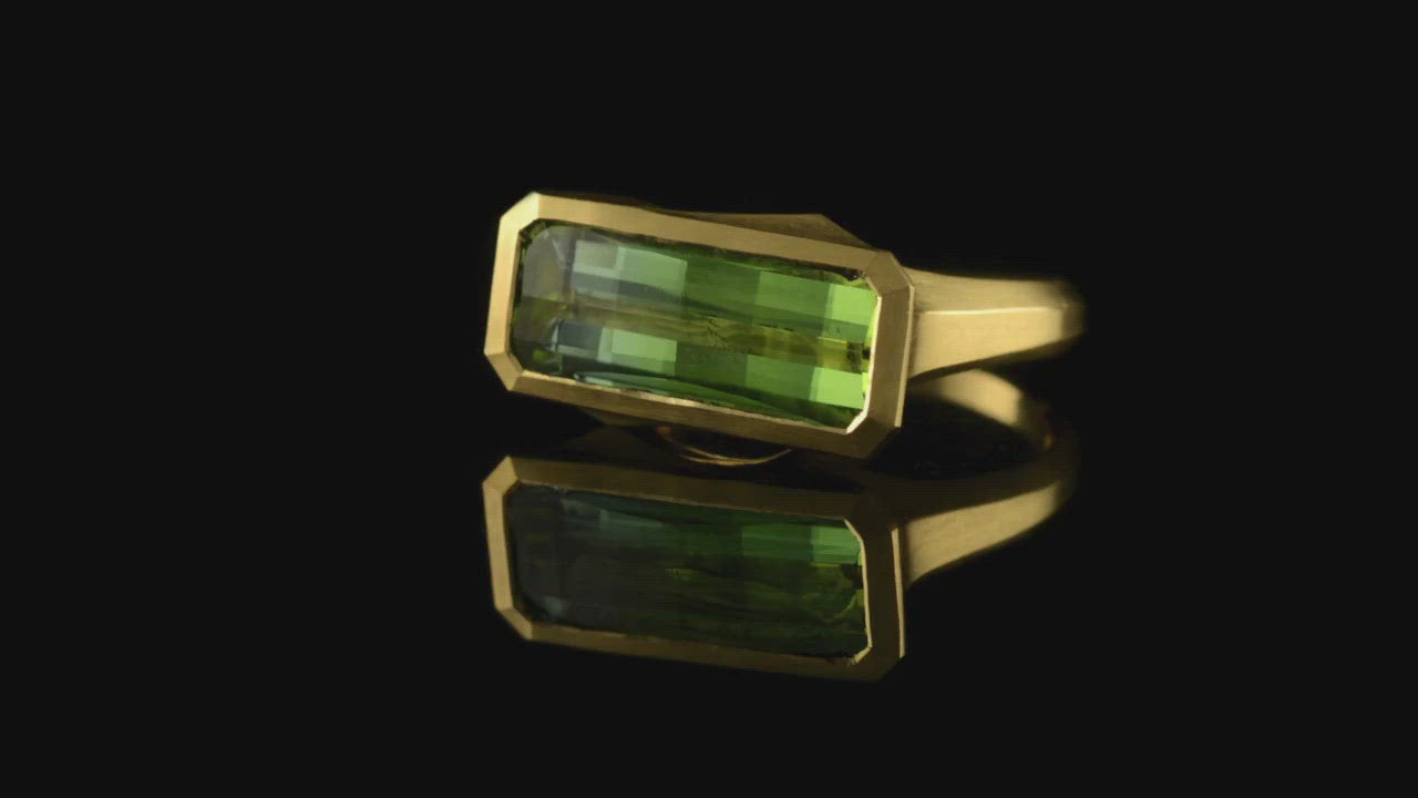 18ct yellow gold and checkerboard green tourmaline Arris ring