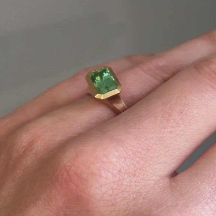 18ct Rose Gold Emerald-cut Mint Tourmaline Arris Ring