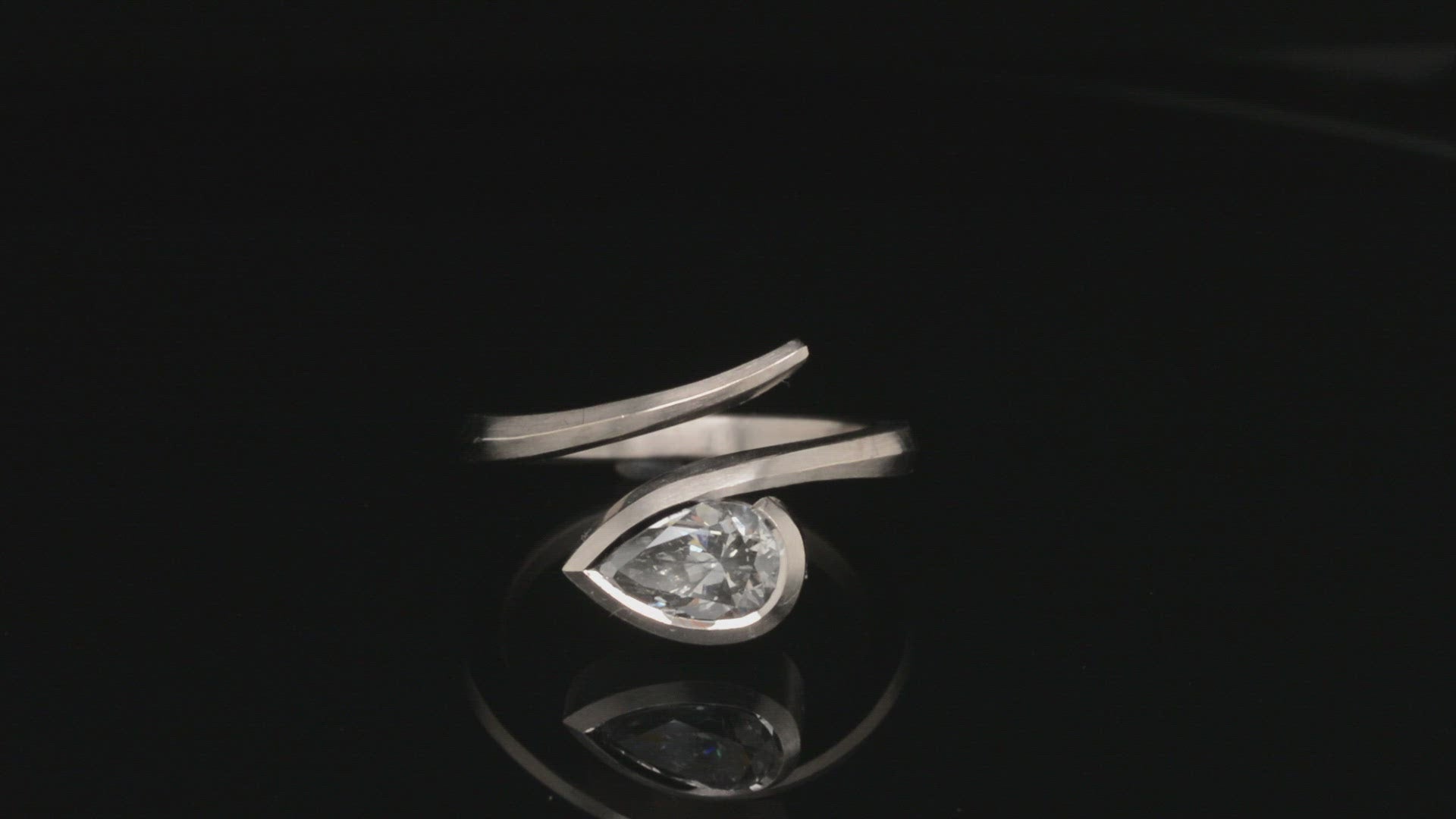 18ct White Gold Pear-Shaped Grey Diamond Twist Ring