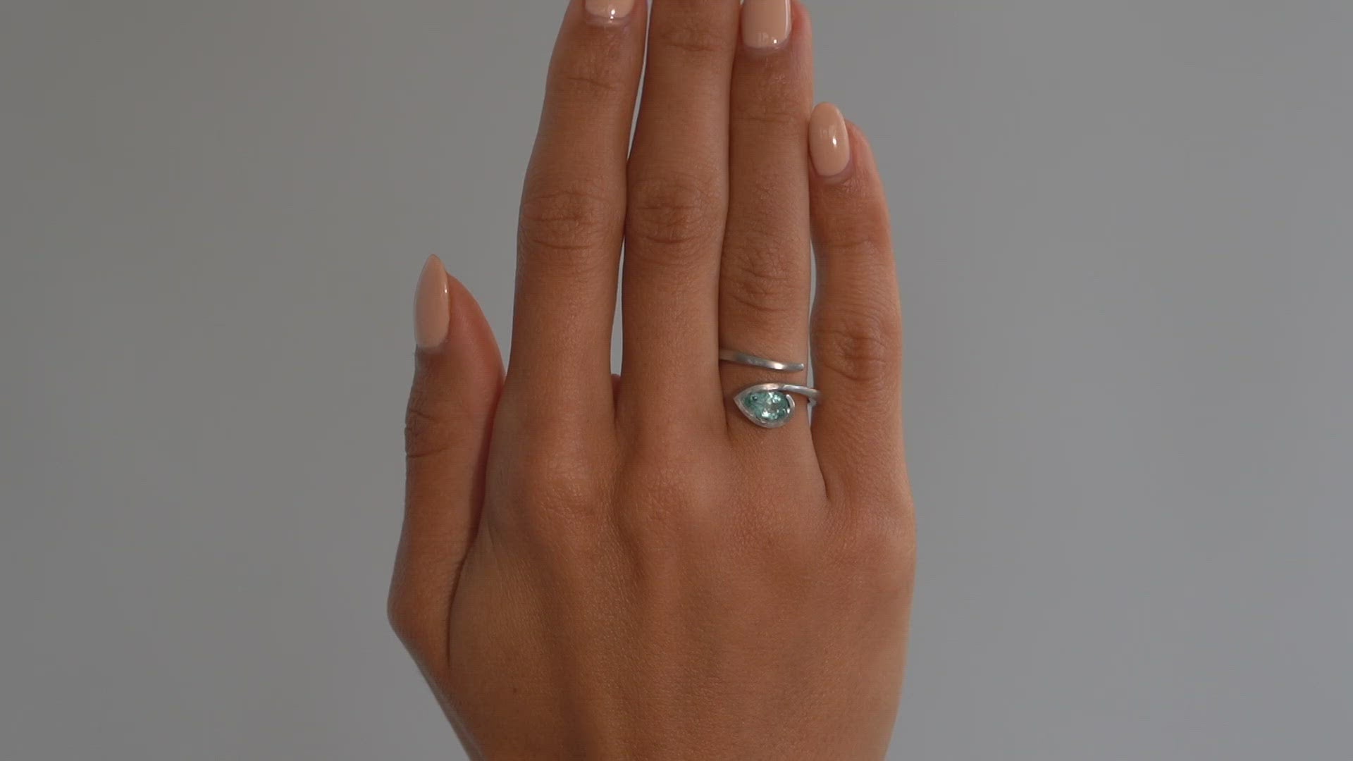 Set in our 'Twist' design the blue paraiba tourmaline is held in place by a simple and elegant open platinum band that twists around the finger. Hand-forged from a single piece of platinum bar, the ring curves around the stone and tapers to a delicate flick at the opposite end.