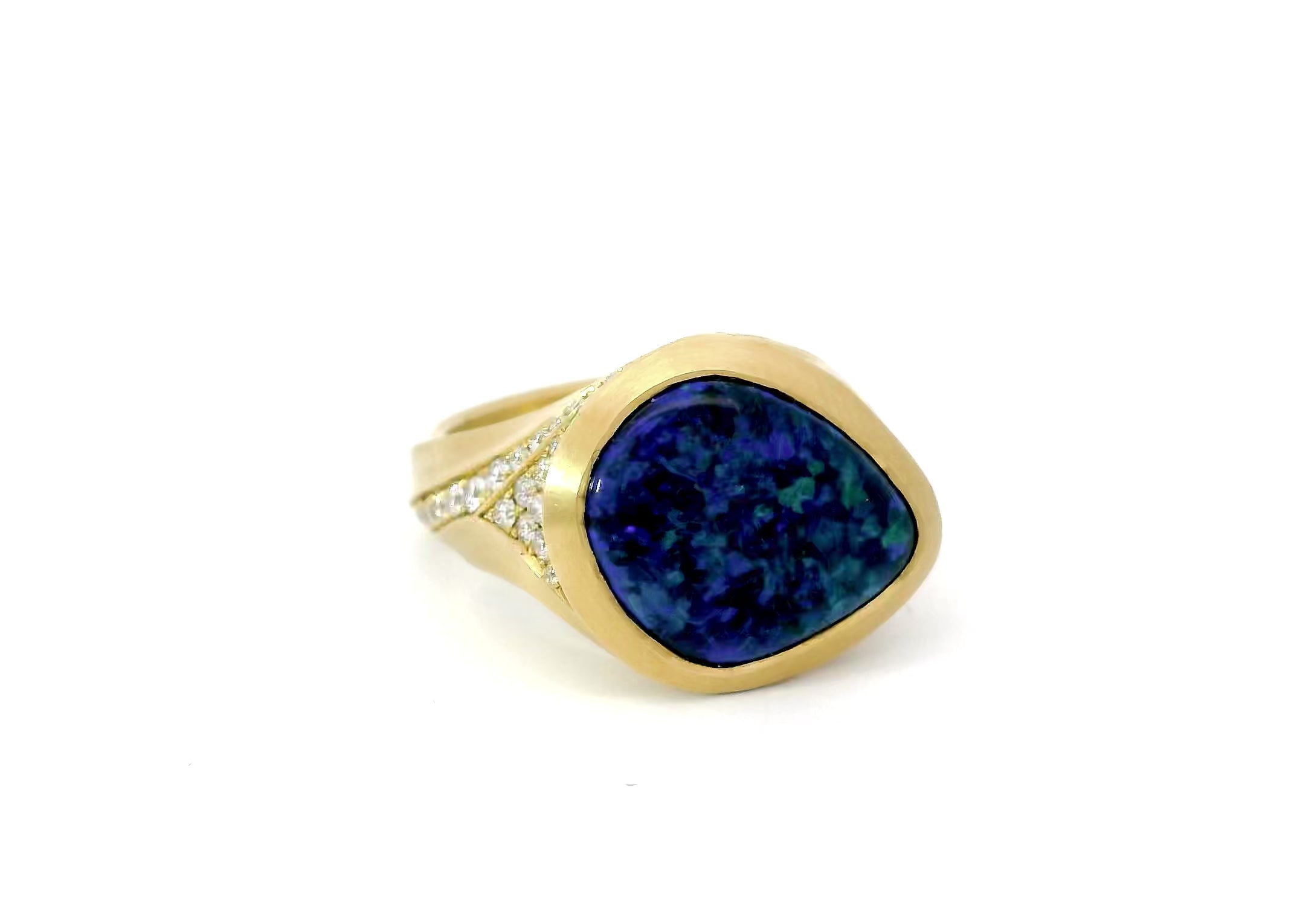 18ct Yellow Gold Lightning Ridge Opal Diamond Arris Ring