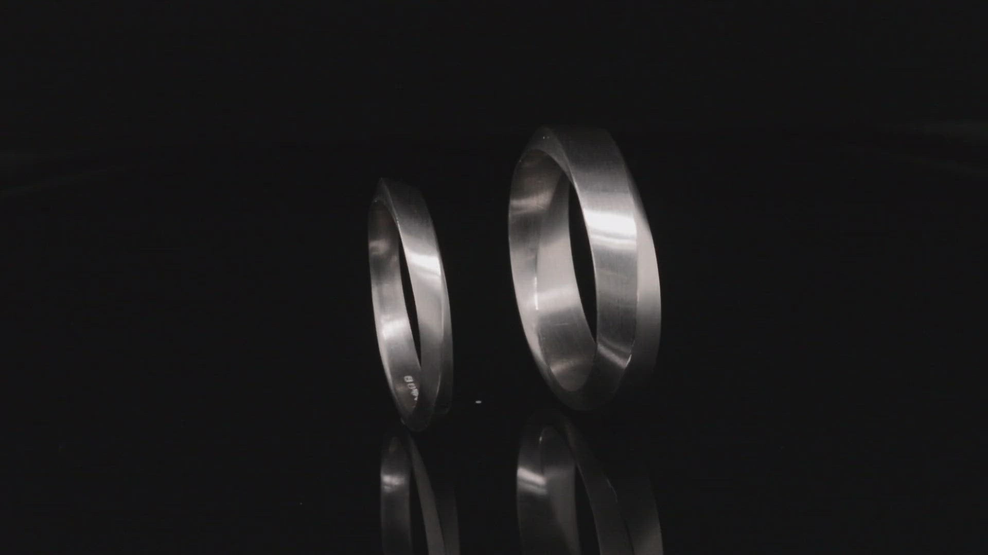 There are two variations, of the Möbius band, a slow continuous twist that slowly revolves around the entire ring (pictured), and a top twist version, which twists only at the top of the ring.