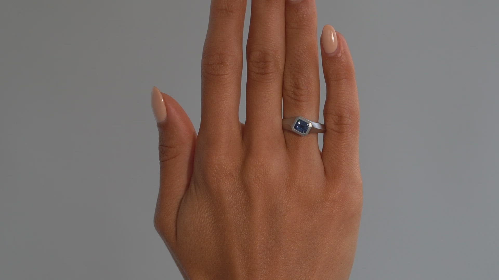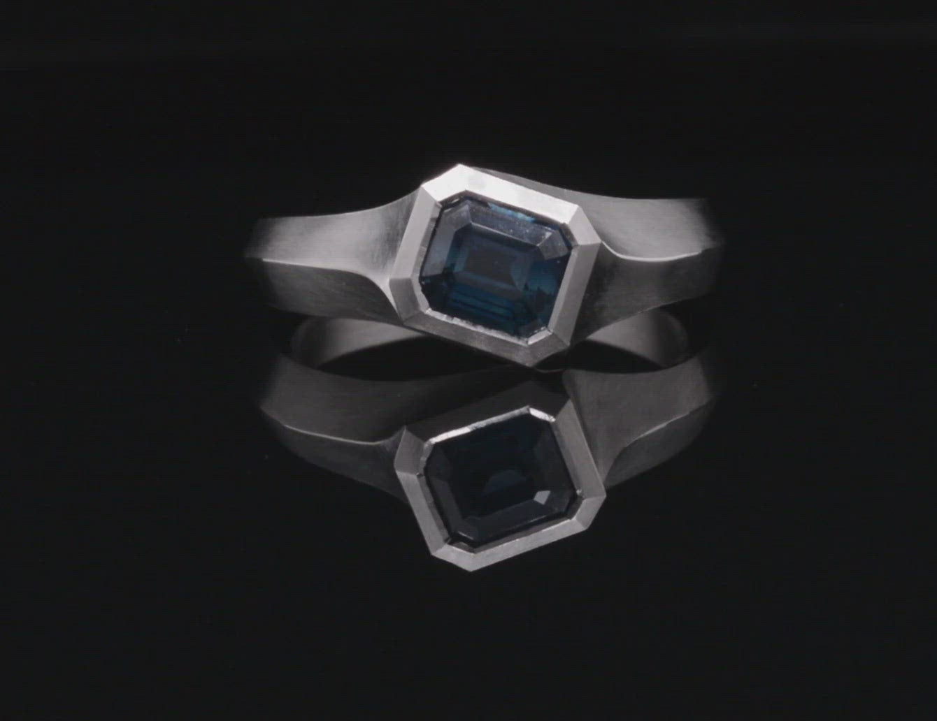 Platinum Arris ring with emerald cut sapphire