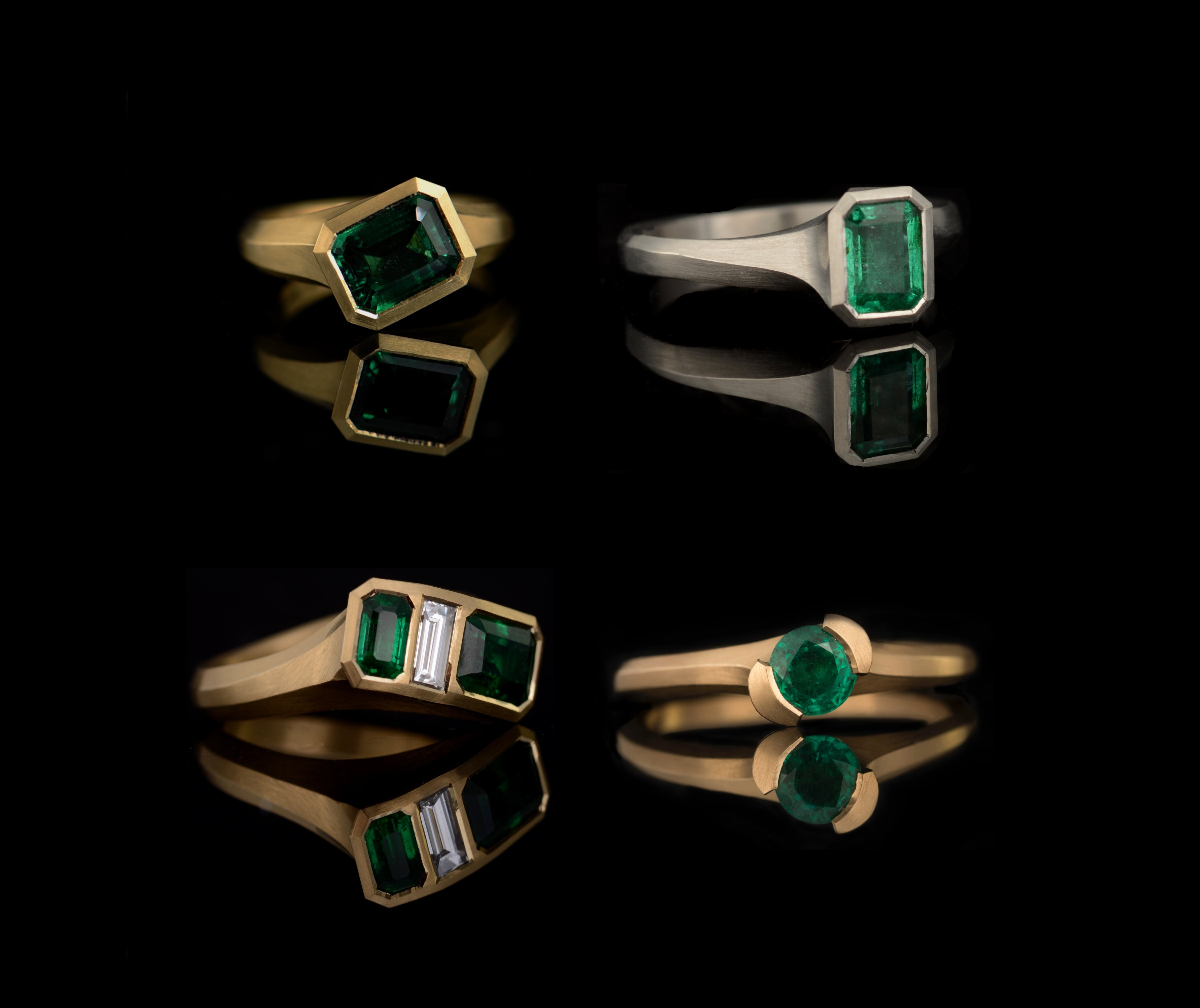 A perfect ring for a delicate stone, emerald are safe set in this full bezel setting and will protect your emerald for a lifetime.