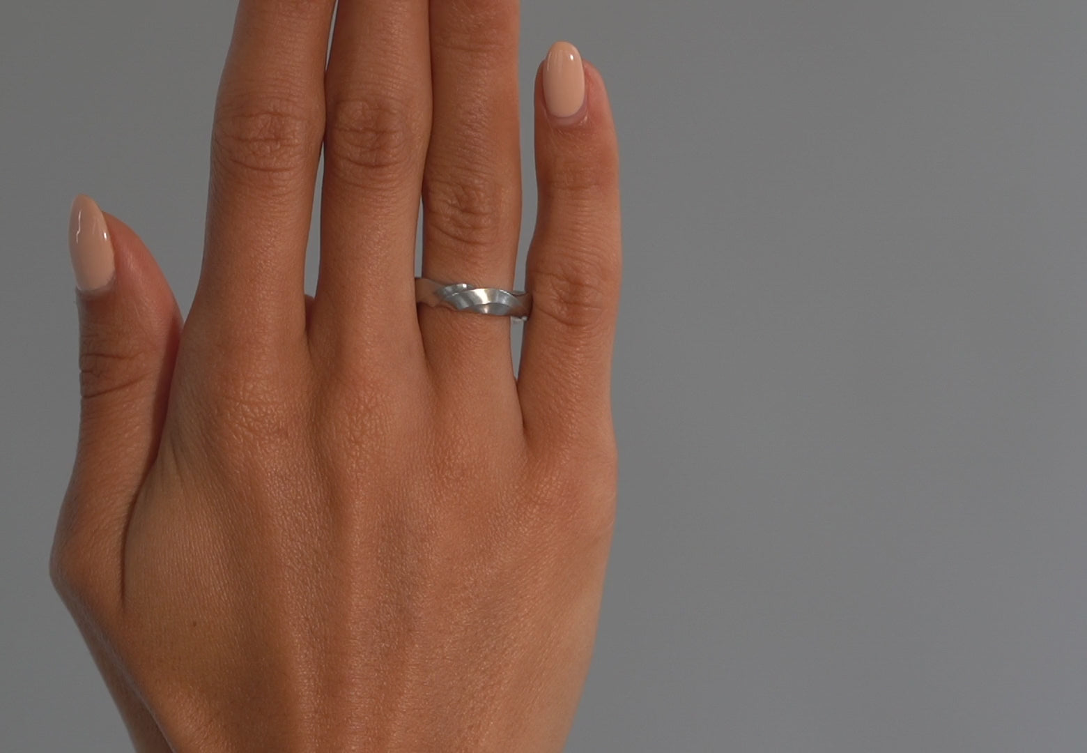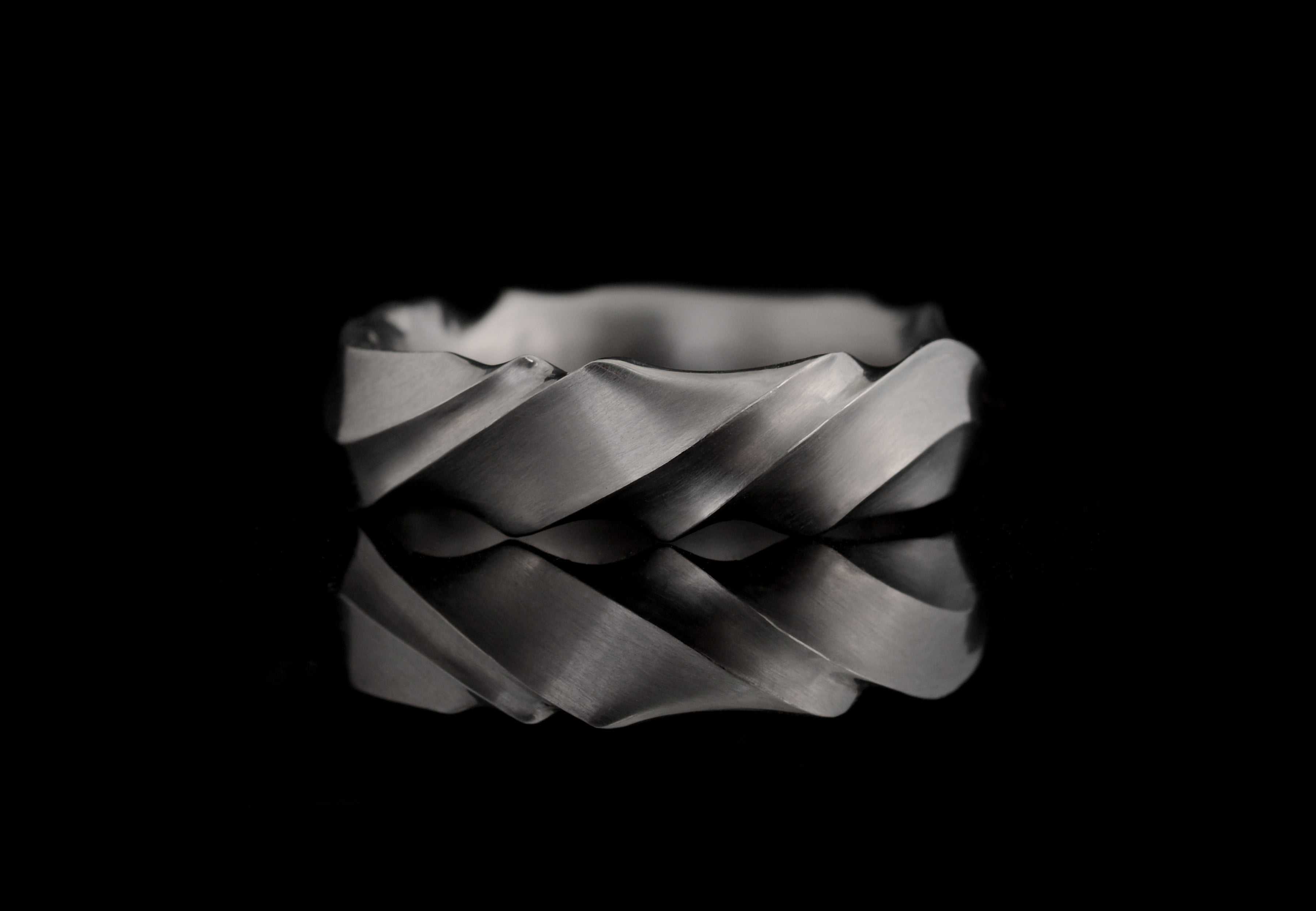 Hand carved, these rings are sculpted in wax before being cast into precious metal. The soft matt finish accentuates the undulating surface curves around the ring. The ridges are delicately polished to add more detail to the texture of the ring.