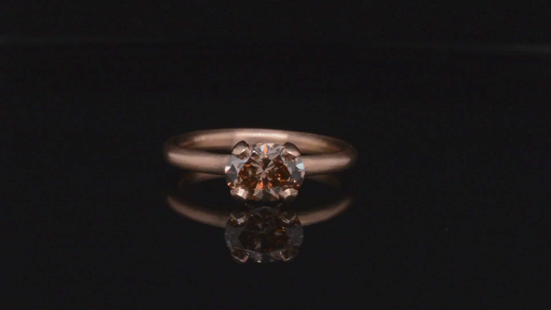 Rose gold four-claw engagement ring with oval cognac diamond