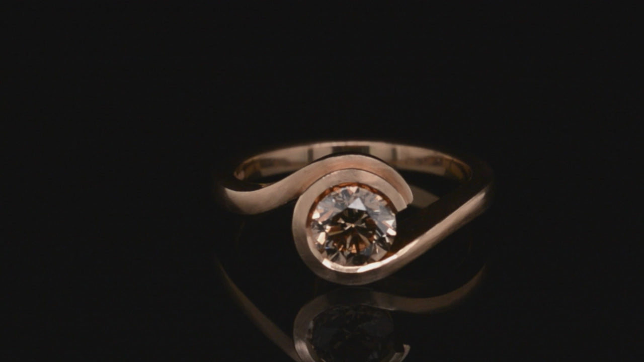 A unique and curvy engagement ring, the 18ct Rose Gold Cognac Diamond Engagement Ring is the perfect unusual engagement ring idea for modern women. Featuring a bezel set natural brilliant cut cognac diamond (pictures are 1ct), this unique ring is an unusual and asymmetric twist on a solitaire engagement ring