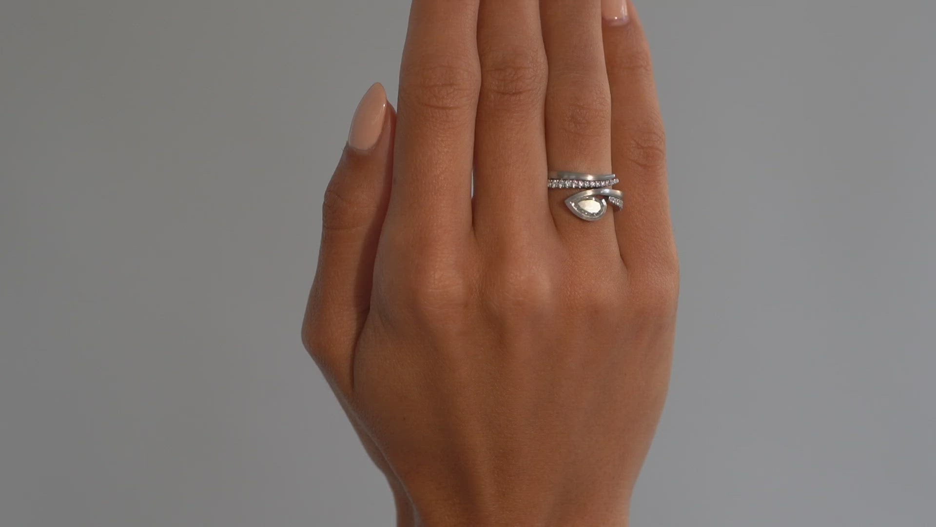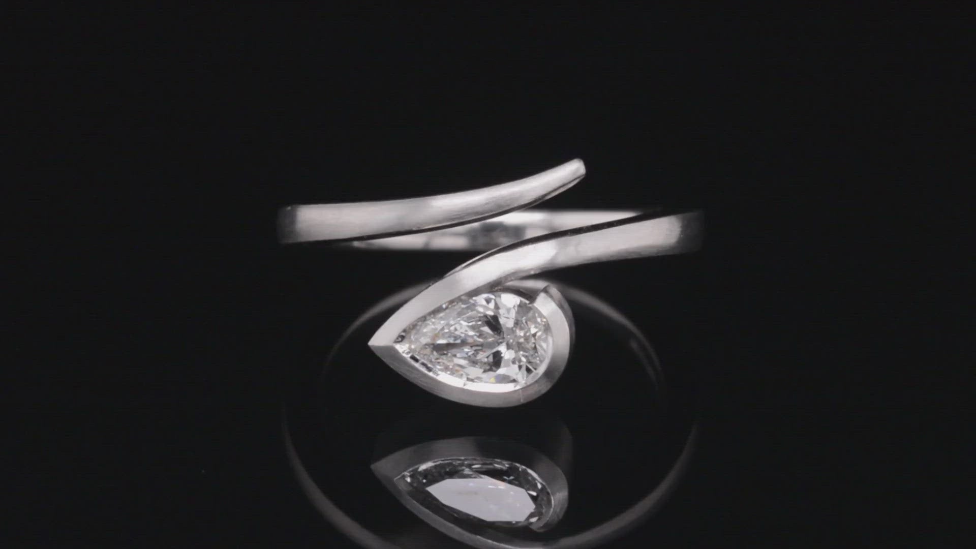 A refined, modern design. This stunning platinum engagement ring is made in our 'Twist' style. Bezel set with a pear-shaped white diamond. Using age-old goldsmithing techniques this ring is hand forged from platinum bar and given either a highly polished or brushed satin finish to create a modern classic.