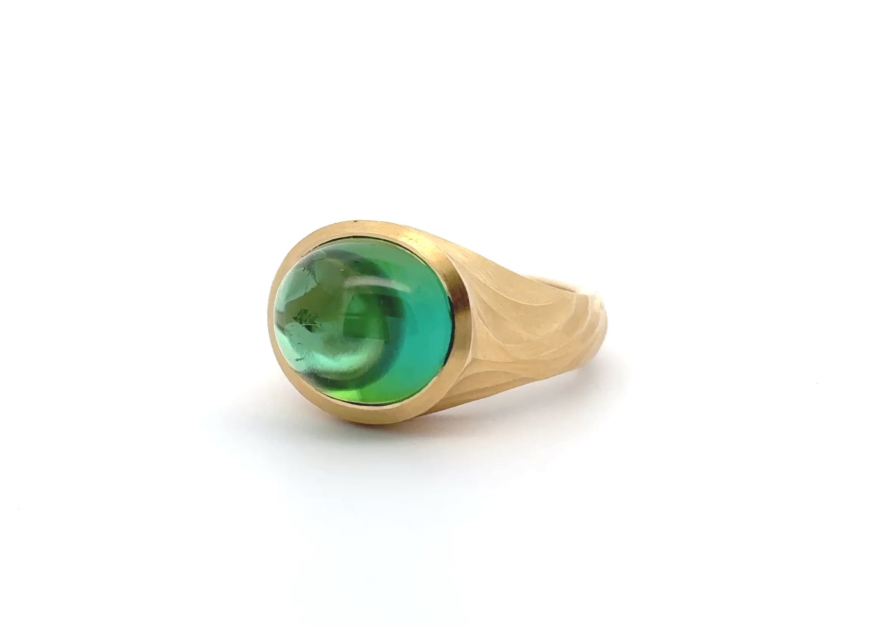 18ct Yellow Gold Green Tourmaline Cabochon Arris Ring